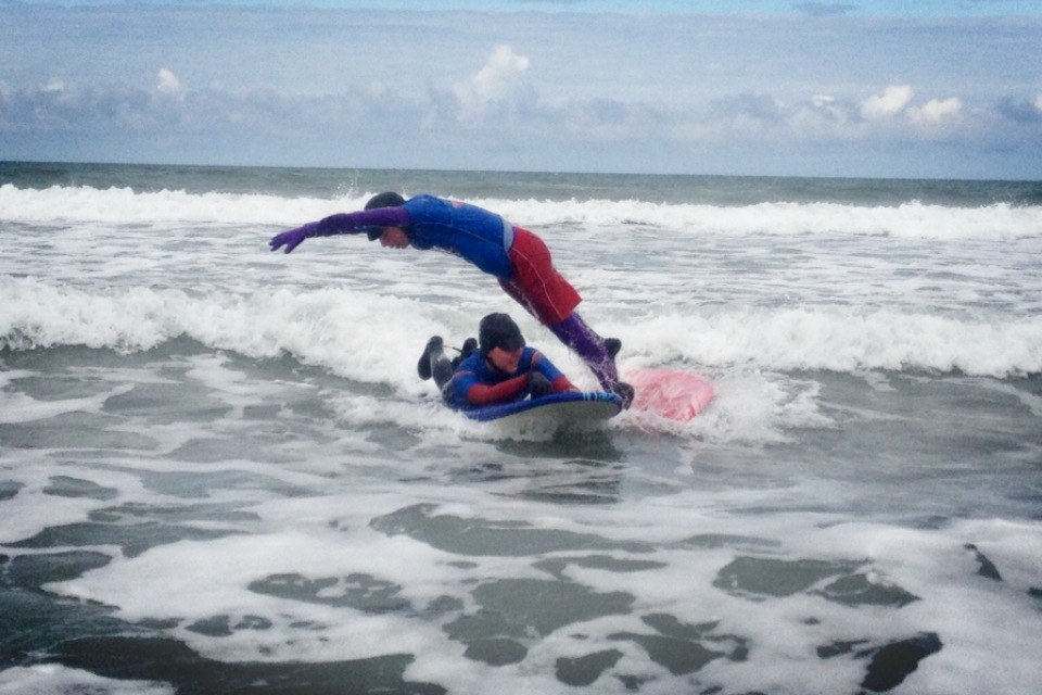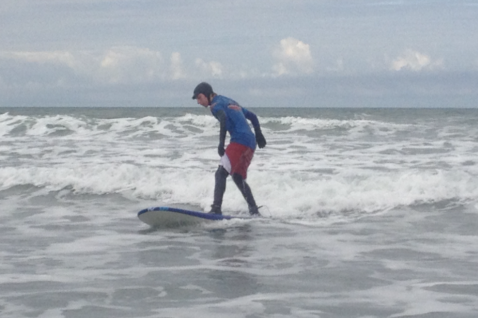 On Saturday morning we got off to a late start thanks to an unnamed person waking up late #judimoan. Marlon then decided to look in the local surf shop to investigate go pro cameras. After ages of looking around the shop and talking to the surf dude guy in the shop, he decided that he didn’t need one. #whatawasteoftime. We arrived a few minutes late for our @ravensurfschool lesson where we met @brynBYRD and Emily (sorry if you wanted to look her up, I don’t have her twitter). After a quick warm up which made us look #verysillyindeed we #hitthewaves, which to our joy/horror were bigger than last year (@judi_k fell off a lot).