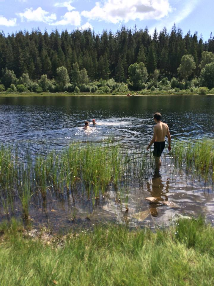 I didn’t go to Stirling but the highlights seemed to be McDonalds, hot running water, Tesco, plug sockets and sweets (sigh!). After only two days on camp our city kids just couldn’t get enough of it… Instead of being forced to endure that first-hand I went cycling with the rest of the Explorers. We rolled out of the campsite in the blazing sun, had an ice cream in Callander, found a bridleway and followed that around the loch, found a different loch, swam across it, had lunch and when we finally got underway after that we stumbled upon a Scottish Explorer Scout Unit on a really cool wild camp of their own by Loch Achroy. We returned to camp via a fast, flowing cycleway in the woods and loved every second of it.