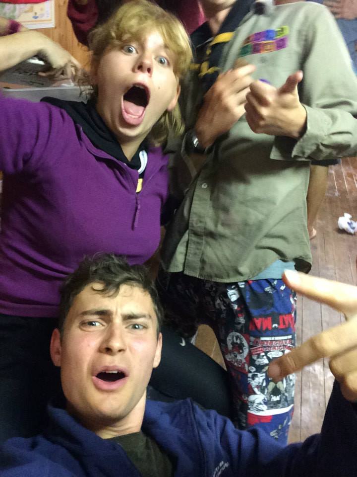 We topped that off with a weird football/ hockey World Cup on the astroturf (I’ve forgotten who won, there was a lot of he-said, she-said about the complicated scoring system) and then the sports centre staff turned on the jacuzzi, lit the sauna, steamed up the steam room and made all the Explorers very happy by rolling out an inflatable assault course which floated on top of the swimming pool. Never have I seen Rachel Gould look as competitive as she did when she beat Annie Bowers to the finish line. However I have seen David’s go-pro face before but it still makes me chuckle.