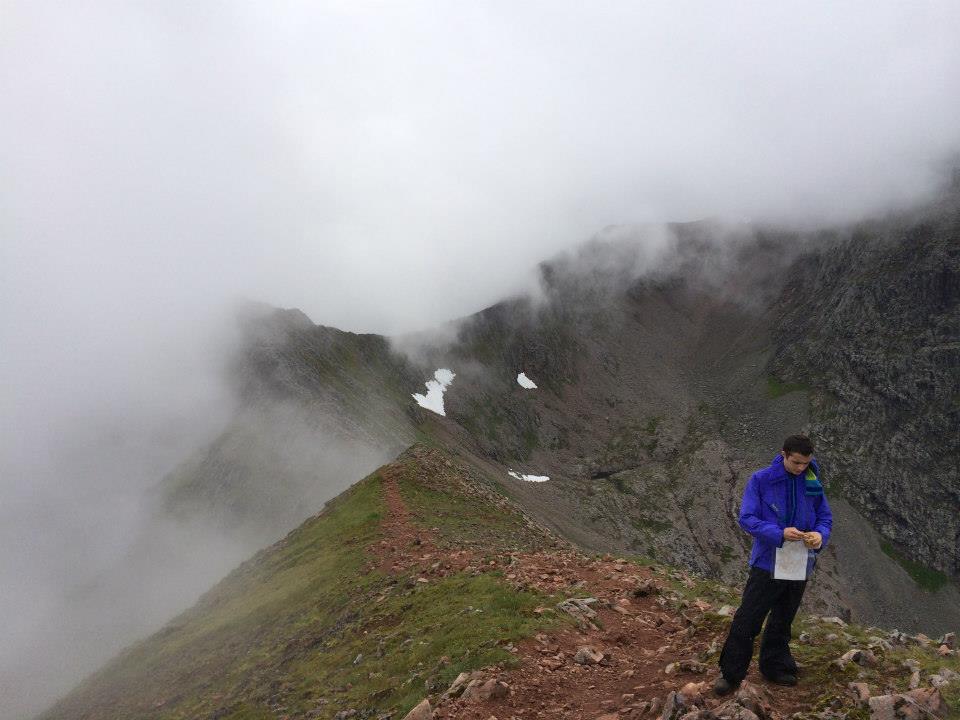 Thursday morning dawned earlier for some than others – the Patrol Leaders were all in the kitchen at 7am cooking a hot breakfast for the Unit and the others soon began to emerge, bleary-eyed and in various states of undress, from their dorms. I had previously prepared all the group equipment (“mountains of it!” according to one Explorer) and dished that out over breakfast, and before long everyone was off and on their way up the hillside. My group was formed of six older Explorers and we were heading out to walk further around the Ben to the CIC hut, and from there we planned to scramble up to Carn Dearg before negotiating the Carn Mor Dearg arête to get to the summit of the Ben from ‘the wrong direction’.