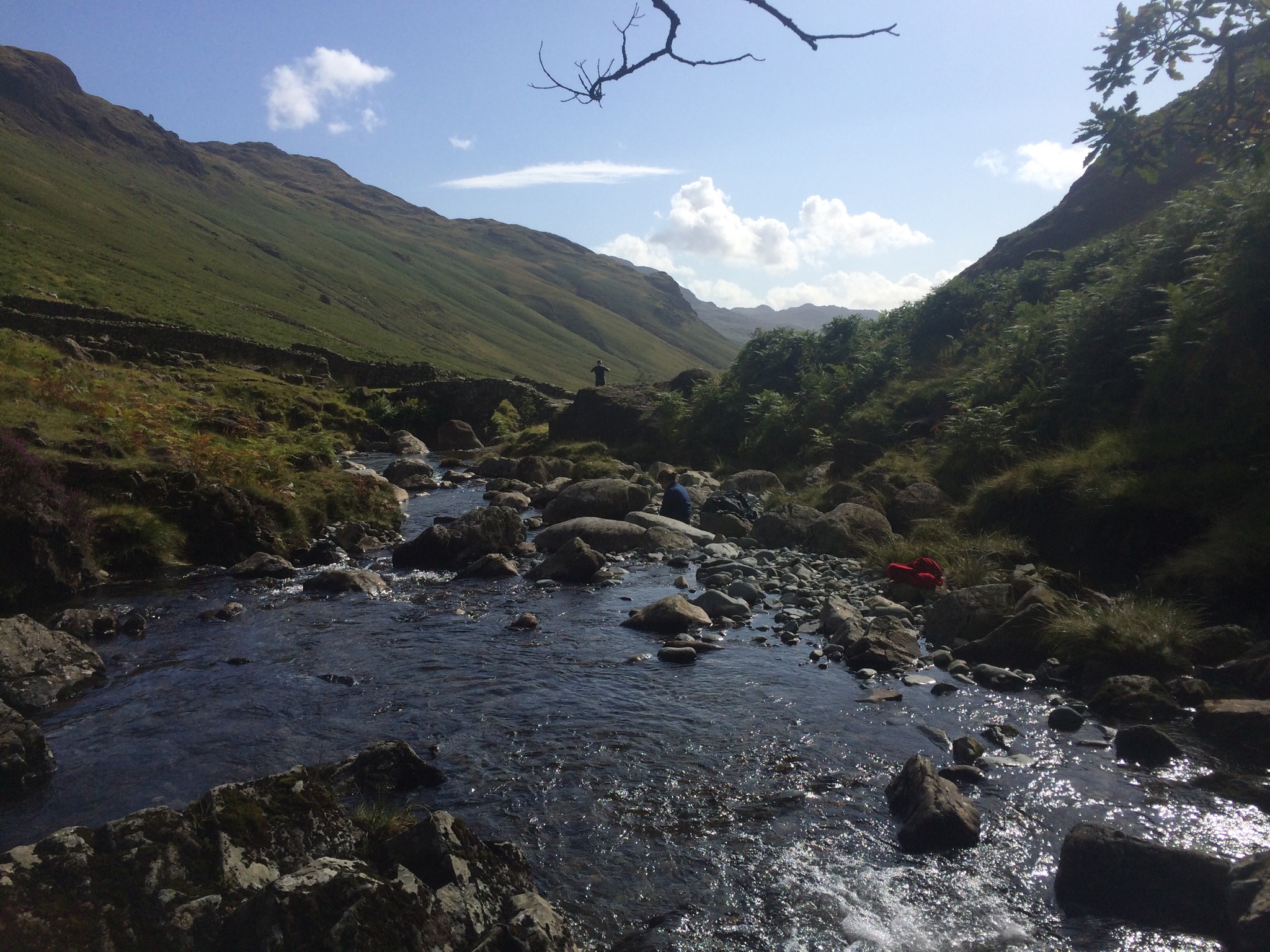 On the 2nd day we would hike over Scafell Pike, the highest mountain in England, and the walk actually started off quite nice, with a bit of sunshine as we walked through the valley.