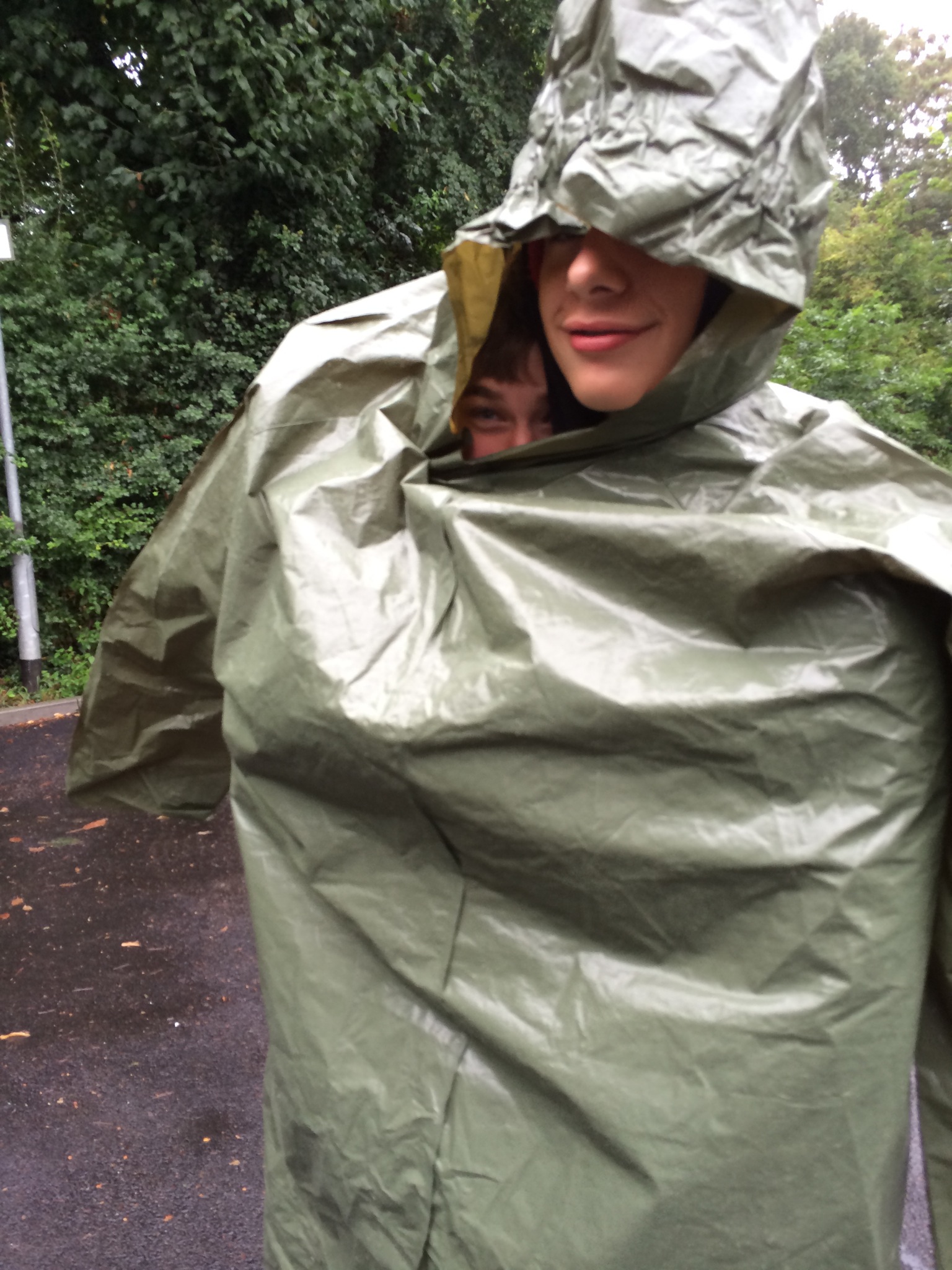 Just as we decided to turn our trousers into shorts, the weather ruined it all by turning into a rain storm in seconds. When this happened, we showed just how ridiculously unprepared we were: I jumped behind a rock to hide, James and Mathew curled into balls to be as unexposed as possible, and Joe dived under his mum’s poncho to hide. After a while we decided the rain was not going anywhere so we started our assent anyway.