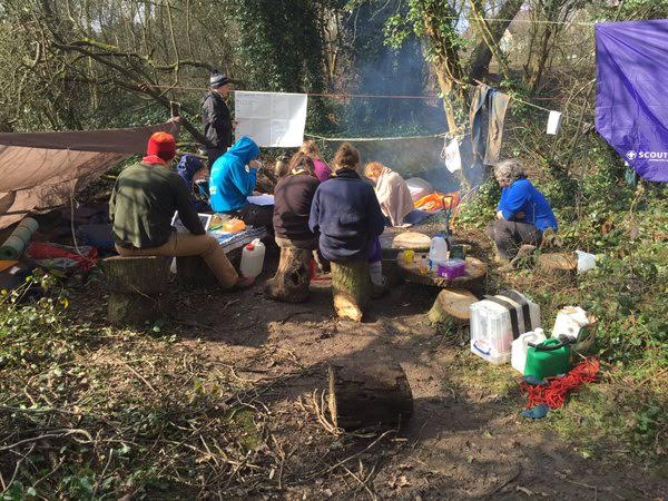 The whole weekend was centered on training the Patrol Leaders and was set up in a cozy survival campy way. We set up our shelters and got the fire going, before getting invloved in some command tasks (to focus on teamwork and communication). The last task was pretty much a race to see who could get down a muddy hill fastest – while blindfolded. The next activity was a combination of drying off and planning our own command tasks for later in the summer term.