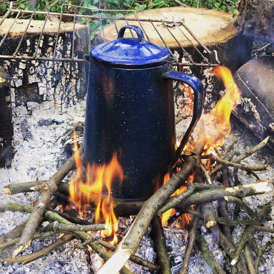 On Sunday morning we woke bright and early to find the fire lit and the smell of coffee already in the air. Some of us chose to savour our sleeping bags, while others sat huddled around the fire, discussing ways to wake up Marlon (“Let’s tell him his tent’s on fire…!”). Eventually, however, the promise of a good old cup of tea did the trick and we got round to making breakfast. Mark speedily fried some bacon, while Marlon showed off his bread toasting skills.