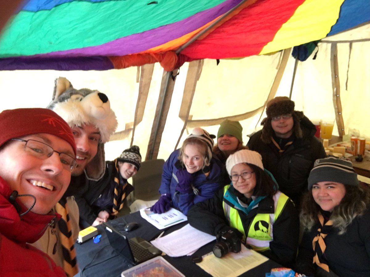 “Our checkpoint was easily identifiable by the enthusiastic singing and screams of ‘Legs!’ every time a group of hikers emerged from the snowy distance. Set up by around 10am, we soon realised that it was blooming freezing. Aided by an ungodly number of layers and Dan’s camp blanket, we quickly formed a collective snuggle religiously surrounding the single tiny laptop that the organisers had entrusted us with. The new tech was très exciting – shout out to Steve and Alan – and only went wrong twice! Although it was a long day, replete with lies such as ‘It’s pretty straightforward from here’, it was extremely rewarding providing a continuous supply of sugar to all the walkers who passed through Checkpoint 16.”