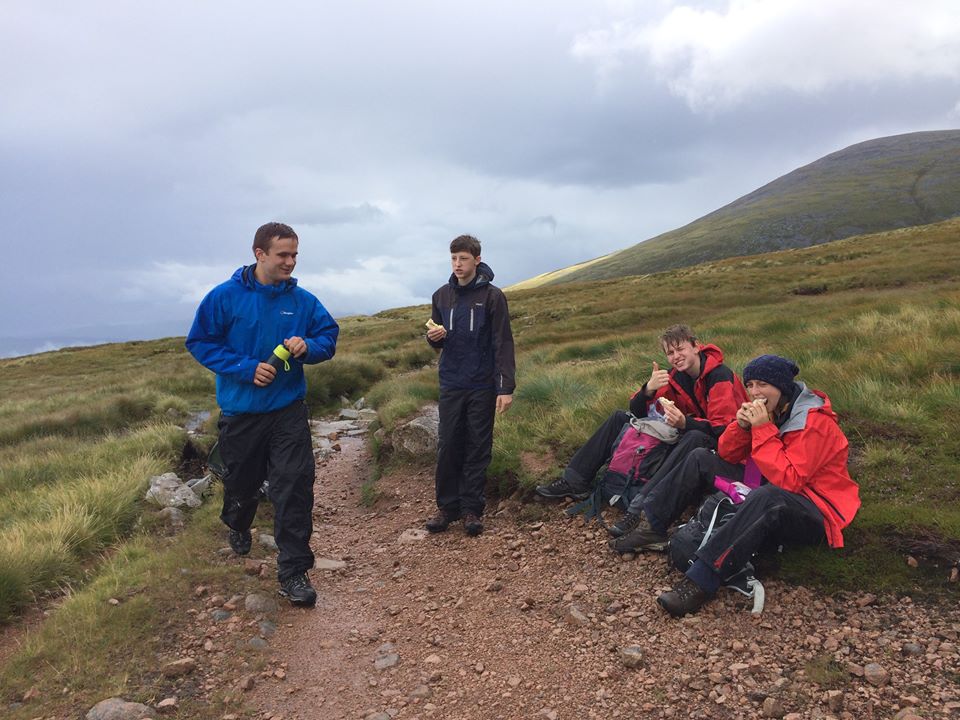 Soon we were back on the road again, heading up to the Cairngorms National Park. Most of us took the opportunity for a quick nap, so we awoke at Bagaduish Activity Centre to the dark shapes of the Cairngorm mountains. Finally, we set up tents and crashed exhausted into our sleeping bags.