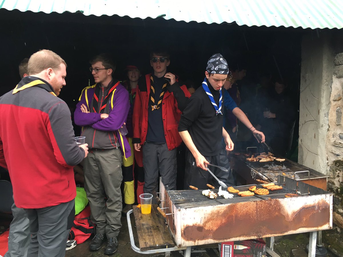Back at camp everyone showered, collected wet kit, and attempted to dry off as much of their stuff as possible, before getting ready for a whole Unit barbecue. This barbecue provided a welcome opportunity for some down time, and we took the opportunity to invest Esperanza into the Unit, before she returns home to Chile in September. We also discovered a great new game, tent tetris, trying to coordinate the sleeping arrangements so that all the Explorers were in dry tents. Eventually, everyone found a relatively dry place to set up their sleeping kit, and we were all soon fast asleep.