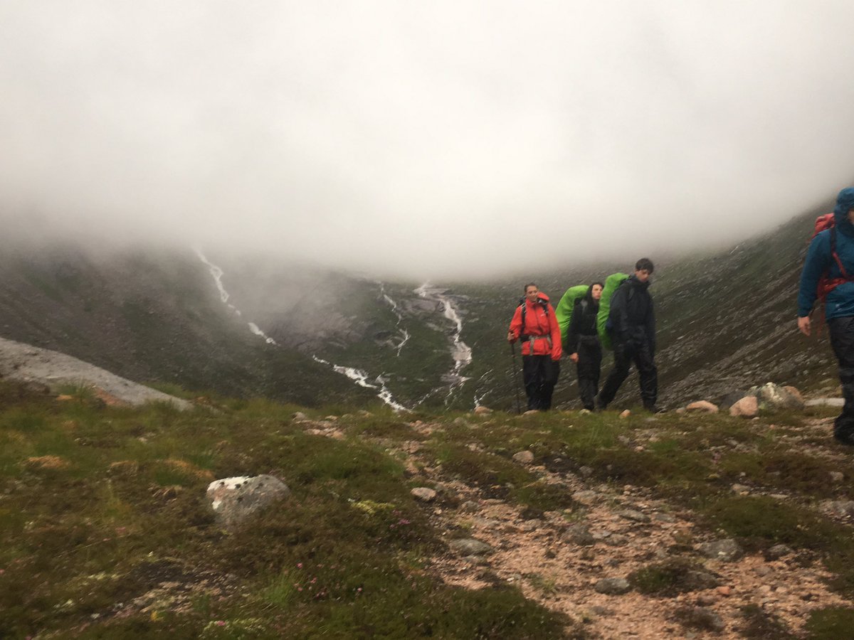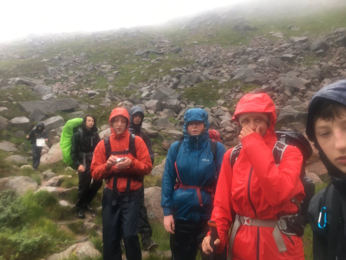 This morning was surprisingly one of the most relaxed we had had on camp so far. As so much of wild camping is reliant on weather, especially in the Cairngorms, we had decided to wait until the morning before deciding on teams and plans for the next two days. Three teams decided to brave the plateau, despite the warnings of extremely varied weather conditions. The rest of the Unit was to stay at camp. After we had decided on a plan, the action began; shopping trolleys were loaded with obscene amounts of carbohydrate and rucksacks were packed with kit, before we finally set off into the hills, each person wrapped in as much waterproof material as they could find.