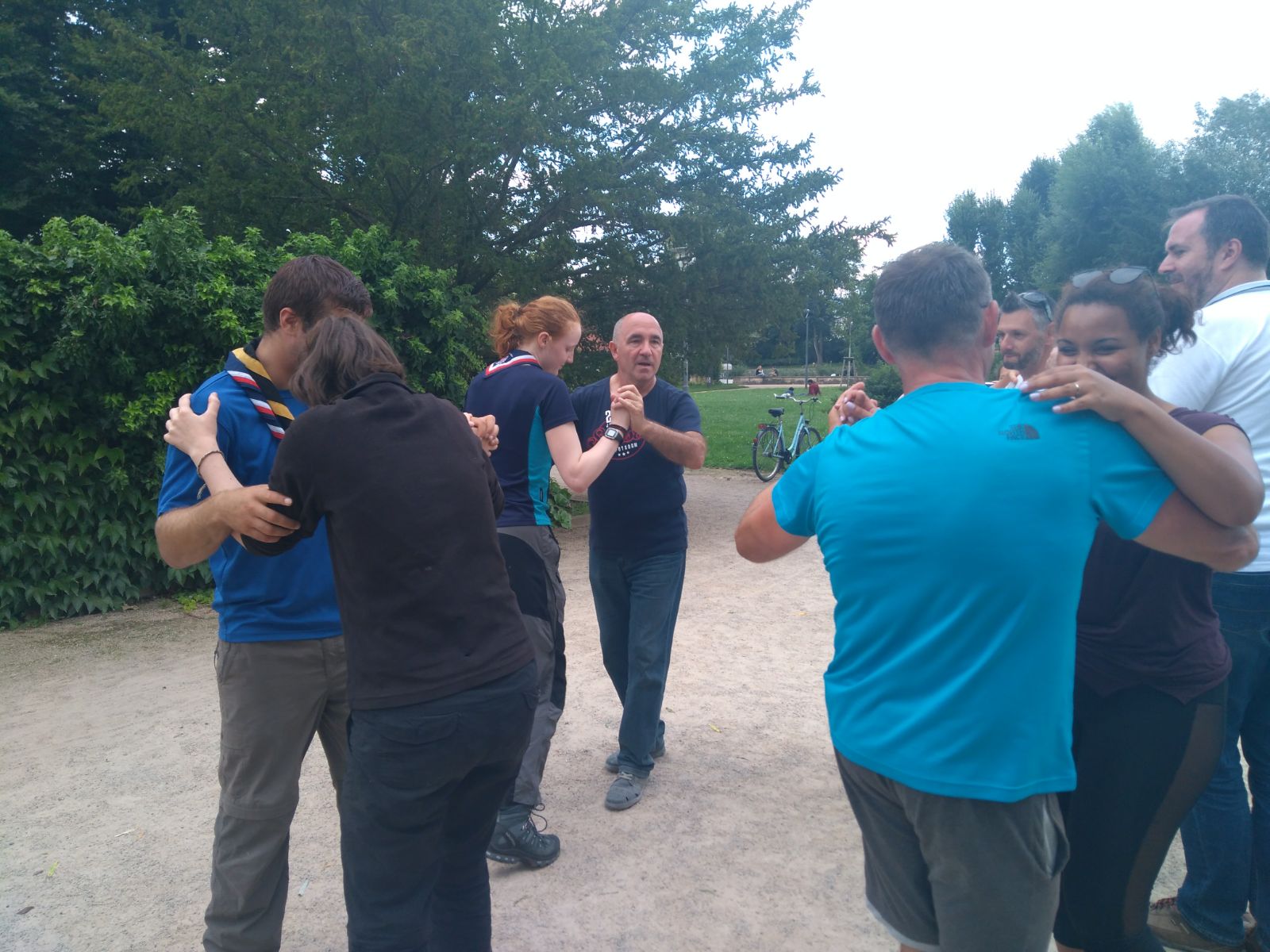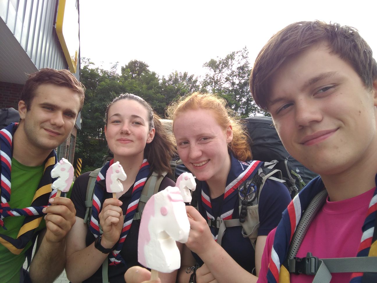 Unfortunately, none of our attempts brought results other than a few recommendations of a campsite about 5km down the road, so we went to the supermarket to buy ingredients for dinner and breakfast before we headed off towards this campsite. Whilst in the cake aisle debating over whether to get a unicorn (einhorn!) cake or not, a woman came up to us and started speaking to us in German. Although none of us speak much German, we managed to pick up a few words and the combination of ‘Pfadfinder’ (scout), ‘Campingplatz’ (campsite) and ‘Auto’ (car) with a variety of hand gestures, was enough for us to understand we were being offered a lift to the campsite; something we gladly accepted. We eventually worked out that the woman actually worked at the campsite – this also explained why she was buying about 50 rolls of bin bags – and we arrived and pitched our tents in no time.
