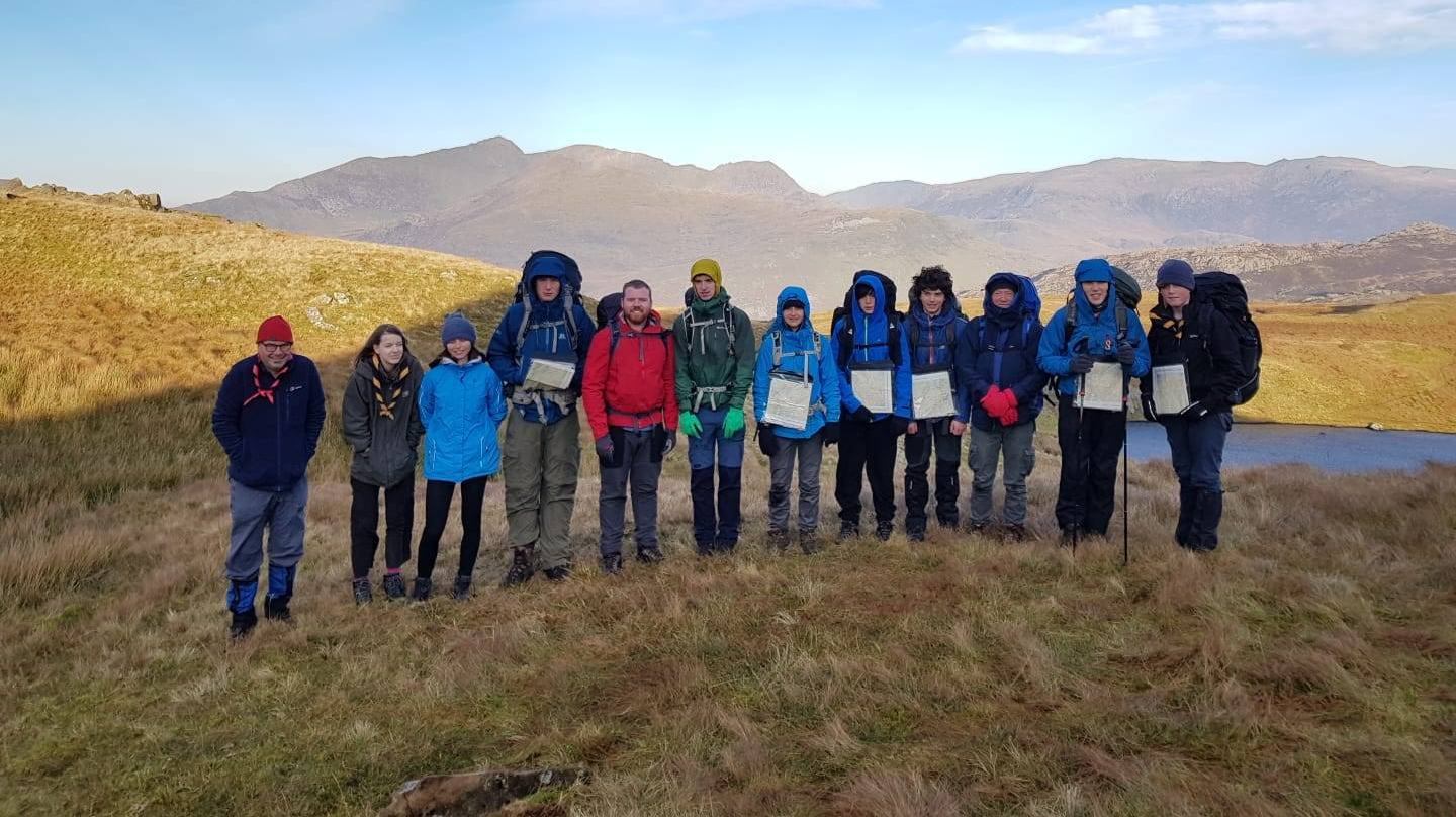 After arriving at Liynna’r Cwn we initially put up most of the tents in a spot right near to one of three lakes in a small area, but because of strong winds, we moved to a more sheltered area (which also happened to have a much better view!). Once all the tents were up and ready we set up our stoves and cooked a lovely warm dinner in our groups. After eating, a few of us went to do some night navigation in the nearby area. It was a very clear night, the stars were brilliant! We then tucked up warm in our sleeping bags, ready to wake up to an amazing sunrise.