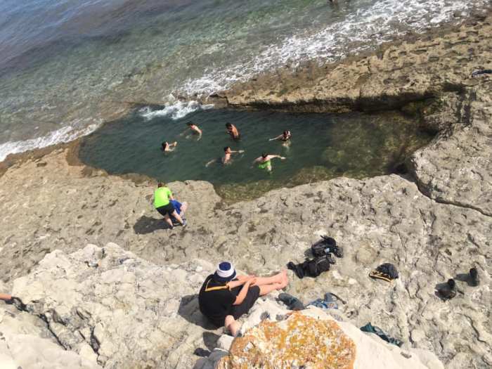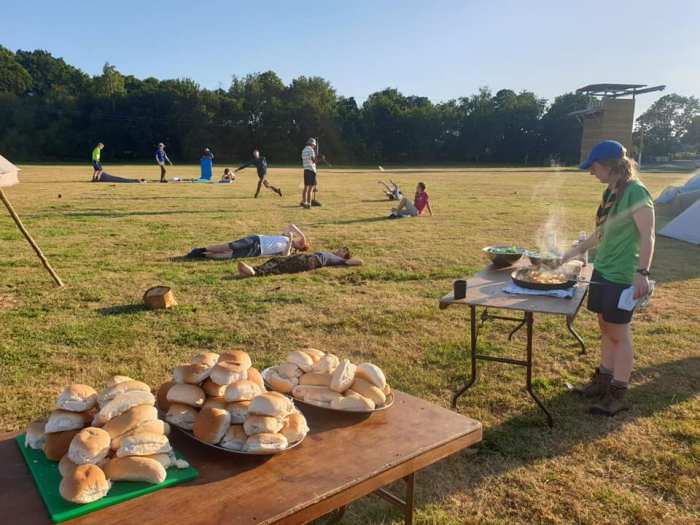 Saturday morning saw us setting out on hikes amid the beautiful Dorset scenery. Groups successfully completed hikes of various different lengths, all arriving at Dancing Ledge in good spirits and ready for a refreshing dip in the sea. After that, we headed back to camp for some very competitive badminton playing, and a barbecue excellently prepared by that evening’s duty patrol. Having eaten our fill of burgers, sausages and salad, we played the classic wide game ‘Commando’. The evening’s activities were then completed by a rousing chorus of ‘Happy Birthday’ for Phil and the dishing out of lots and lots of chocolate cake!