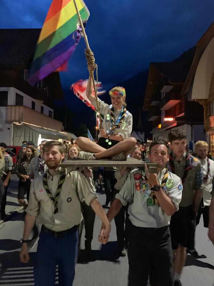 August 1st had finally rolled around, and we were all very excited! With it being both Swiss National Day and the anniversary of the start of Baden-Powell’s experimental camp on Brownsea Island, there was lots to celebrate in Kandersteg. We all enjoyed a warm day both on site and in the quaint village, partaking in high flying activities such as abseiling, and also resting after the previous tiring days. In the evening we joined all the other residents of KISC in an impressive parade through the village, ending with a thrilling fireworks display. We then trooped back to camp through the rain, indulging in cake and hot chocolate to warm us back up.