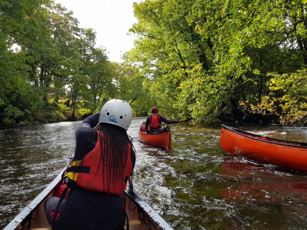 We put in at a beautiful bridge and set off down the river. The rapids were great fun, providing enough challenge to be interesting but not enough to be scary. However, the shortage of recent rainfall meant the river was lower than ideal – resulting in some dreadful sounds as the canoes scraped along the bottom. The rapids grew steadily through the day, starting small and working up until we were paddling larger features. At times the banks became very steep so that the only way out was down the river! We finished at a cafe for cakes and drinks and then, after a good day on the river, headed back to the hall to dry our kit and relax.