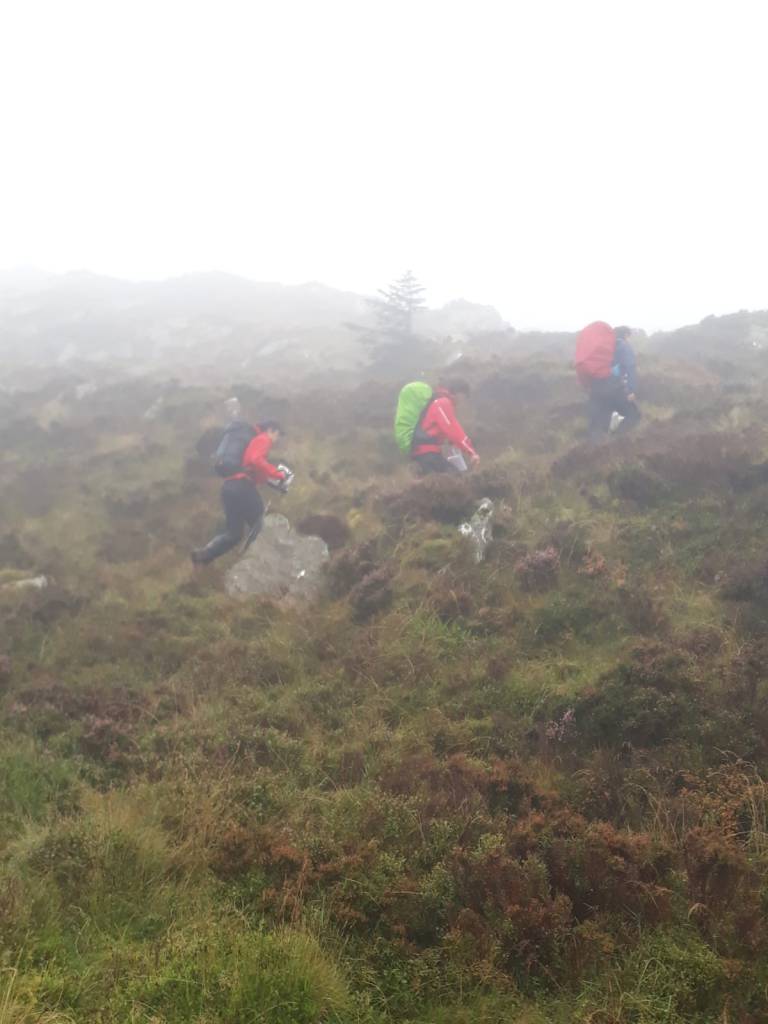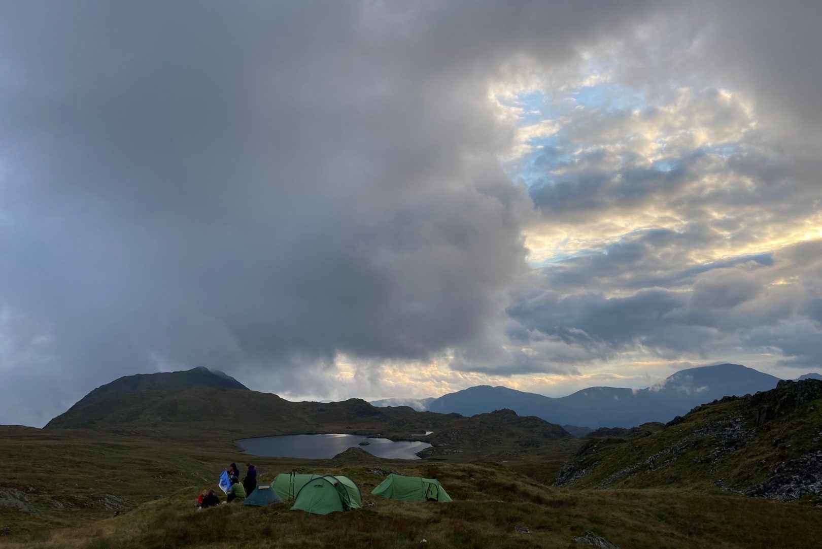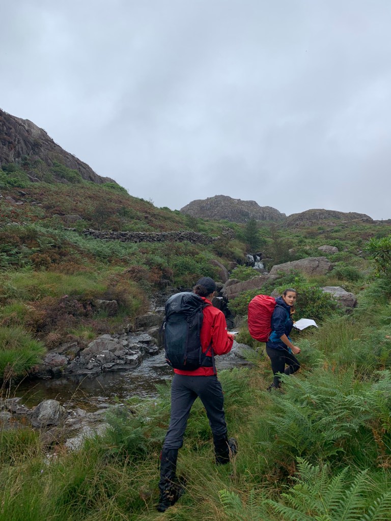 “The next day, after a good night’s sleep on the hillside, we set off promptly to begin the day ahead. After just half an hour of flat walking, we hit our first obstacle: Cnicht. The mountain, although tall, offered a slow and steady climb to its peak. As much as I would love to tell you all about the picturesque views at its summit, we were greeted at the top with wet and foggy conditions so not much could be seen. Standing at 698m Cnicht offered a good challenge to start the day including a steep scramble off its northern face where we practiced spotting each other down the slope. Despite the elevation, John didn’t fail to keep us on our toes with lots of assessed navigation keeping us busy on the descent.