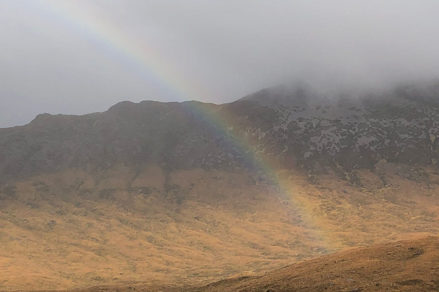 The descent was more rainy and the path more muddy but we enjoyed being able to walk through it all without getting wetter than we already were! Just as we arrived back, a beautiful double rainbow arced up over the river and we went inside to pack up all our stuff, re-waterproof and head back down to the minibus.